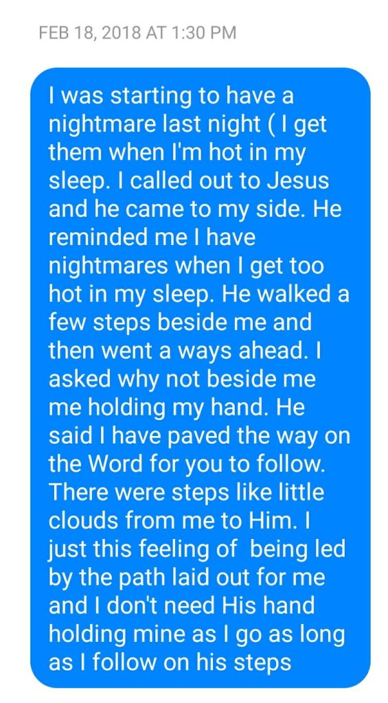 Below is the message I sent my mom the day after my dream. It’s not grammatically wonderful by any means, but paints a picture of how Jesus was showing me He had a plan for me. God had paved the way by His Word. I needed only to follow.